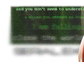 The show's opening titles are intriguing, as they show Lain walking through a shifting series of backgrounds and situations underpinned by music very suggestive of a Suzanne Vega or Sheryl Crow ballad, and often Lain appears in such scenes as the character on a TV screen, seeming to interact with the people in the room. The final opening title scene shows Lain losing her cap in a gust of wind, but then the scene freezes, becoming somewhat like an old photograph, save for Lain who walks away after a moment, leaving the cap suspended in the air and giving the viewer the first taste of the flexible reality of her world.