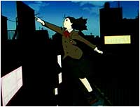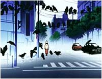 Serial Experiments Lain was originally broadcast on TV Tokyo during the Summer of 1998 and was re-broadcast in the fall of 1998. The show comprises thirteen episodes, each titled with a theme "layer," as in a software layer. (As software layers accumulate, they become more abstract, and one might argue the same is true with Lain). The first episode, for instance is Layer 01: Weird, an anagram of Wired. Director Nakamura Ryutaro expertly visualizes each episode, and the intense visual styling does much to cover for the admittedly simplistic art. The series is available on VHS, LD and DVD in Japan and VHS and DVD in North America from Pioneer. The first DVD or tape contains the first four episodes, and the next three DVD or tapes each contain three episodes.