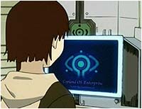 One night in October of 1998, the author was relaxing in a room at the Westin Osaka after a day of traveling around Kyoto visiting various temples. It had been raining out, which lent the color of Osaka's night lighting a peculiar aspect of clarity as the water on the roadways reflected the lights. Next to the hotel is the impressive Umeda Sky Building, a pair of 170 meter tall towers connected by a wide span at the top. The light show that played out from this span was constantly shifting, looking very like something from Close Encounters of the Third Kind. The interesting point to note is that the building itself was not in the field of view from the room's window, but the reflections of the lights on everything in the area was easily visible. The hotel room itself was done in an ultramodern and very elegant black marble and gold trim motif. With the giant bay window looking out over the cityscape of distant reflections, one could not help feel just a little like the subject of a Syd Mead painting. It was about 1:30 in the morning, and the television started showing one of the late-night anime programs. The show's title was Serial Experiments Lain, and right away one could tell that this was not born from any of the ordinary anime plot structures. (It is, in fact, the anime realization of a video game for the Sony Playstation.) On the surface, the show appears to describe the efforts of a junior high school girl Iwakura Lain as she gains an interest in the online lifestyle, but ultimately what the show reveals goes well beyond such superficial themes as online activities and the habits and desires of a schoolgirl.