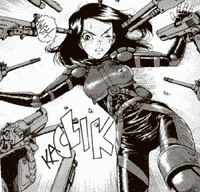 Battle Angel Alita is the story of a young and vibrant girl- or rather, machine. She is first found in the dumping grounds of Tiphares, a city that hangs from the sky, by a mechanical doctor by the name of Ido. Ido, amazed with the fact that she is still alive, takes her in and puts her back on feet, determined as ever to make her even more beautiful as each day goes by. However, his dream is ruined when Alita decides what she is meant to do with her life - fight. She becomes a bounty hunter with Ido, being as skilled as ever when she fights.