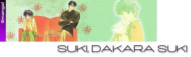 Now with Suki, Dakara Suki, CLAMP ventures forth once again in a completely different direction. To those of you looking for flashy two-page spreads depicting fight scenes, or cute talking creatures like Mokona or Kero-chan, you may be in for a surprise. Suki. Dakara Suki has a look unlike any previous CLAMP series. In fact, if you did not know the manga was by CLAMP, you may not recognize it as their work from the artwork alone. The characters lack the large eyes and pointy eyelashes seen in Rayearth or X, the background artwork is very minimal, there are no two-page spreads showing flashy action, and the clothing everyone wears is very.... normal. Mick Nekoi, the artist responsible for the artwork in Card Captor Sakura draws Suki, Dakara Suki, however the style and tone in this series is not similar in the least. As I read this manga, there was an initial sense of strangeness, but soon I could care less about the art and was drawn in by the story. Take this reviewer's word for it, it's a great story, one you should definitely not pass up.