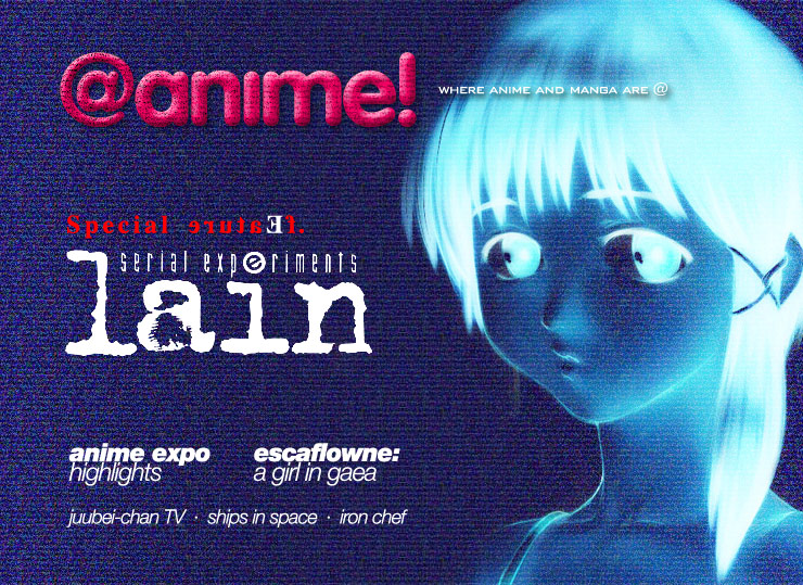 Ready for anime reviews? Well, in addition to the Serial Experiments Lain feature, we have Juubei-chan TV, complete with some major ninja-style action. Then, from the @a! LD Box, Scott takes us on a trip through Tokimeki Memorial OVA 1. Want to see if the Pokémon craze can have a follow up? Check out the Digimon Adventures!