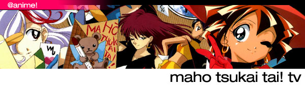Slated for release on LD and DVD starting on 10/25 for a multi-volume series it currently shows on the WoWoW cable television station at 7:00 pm. This wacky series definitely has potential as the quality has not faltered with its transition to television. The author enjoyed the original OAV series and looks forward to seeing more of the TV series. One can only hope there will be a movie one day for those Maho Tsukai Tai fans, but if not the TV series will keep a lot of people happy.