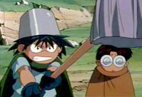 On the protagonists' end, the crew consists of a good assortment of characters. The first is the title hero, Orphen, a magic-user who has traumatic past that drives him forward towards his conflict with the Mages' Tower and Bloody August. Then, there is Magik (or Magic, Magick; whatever will strike AD Vision's fancy), Orphen's young apprentice. He is a bright and happy lad with his own wishes and desires. Another character on Orphen's side is Cleo, a young woman who has a tendency of jumping to conclusions a little too fast. She seems to just be along for the excitement at the beginning, but is being drawn emotionally towards Orphen. The notable exceptions of a well-fleshed ensemble are the two dwarfish fellows, Vulcan and Douchin, who seem to be indebted to Orphen. For the most part, the pair are porters, trap-springers, and a pitiful attempt at comic relief. The glasses wearing half, Douchin, seems to be a narrator. His lines show his knowledge of everything that's not immediately apparent to us. On the other end, the antagonists appear, in the beginning, to want solely to foul up Orphen's actions and to delay his progress. However, we eventually find out that both Chairudoman (Childman?) and Hartia have an intricate past with Orphen, and are driven by their own goals. Towards the end of the series, those goals make them pseudo-protagonists. The lines are not clearly drawn in this one, which adds to its flavor.