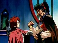 I've always been impressed with the quality of Iria: Zeiram the Animation. Her transition to DVD does her definite justice. The impressive animation quality shines through on this DVD, with beautiful sharp images and smooth transitions. No recognizable errors in the transfer to DVD, although I did notice a slight color error with Iria's brother's hair, but this is probably due to my crappy DVD player. ^_^; Iria offers a standard of both sub and dub or even raw Japanese. The subs are in white with a black outline, unlike the now typical yellow with black outline. Unfortunately this makes the subtitles are occasionally difficult to read. The menu is purely secondary, with no flashy eye-candy and I am content with Central Media U.S. Manga Corps concentrating on a quality transfer to DVD, they didn't disappoint. Iria and her brother go on a mission to rescue some people when they encounter a legendary creature known as Zeiram. Zeiram is an invincible and invulnerable foe with phenomenal powers. After Zeiram takes Iria's brother, Iria begins her strange obsession with the beast. Tracking it and doing everything she can to defeat it on the hopes of saving her brother. Iria teams up with a cute androgynous sidekick who quickly becomes tied into Iria's personal quest to defeat Zeiram. During their quest they expose a complex and chilling conspiracy around Zeiram and the Tedan Tippedai Corporation's plot to use the relentless beast as a weapon.