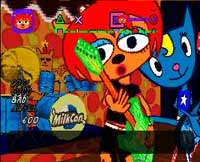 The repeated gameplay of Parappa was minimal at best as once you finished the levels in the game that was it. Um Jammer Lammy kicks Parappa to the curb with even more gameplay as once the player completes a level they can team up with Rammy, Lammy's rival. Rammy, a black and white version of Lammy, has a different guitar-playing style, but definitely rocks as well as Lammy if given the chance. Another player or the computer can control Rammy. Using the computer to your advantage can help you get through tough levels where Lammy cannot do it solo. If that wasn't enough, once the player finishes up all seven levels of the game, he can battle head-to-head with either Rammy or Parappa himself! Parappa also has his own game with different arrangements to the Lammy Level songs, which is quite cool! It's like two games in one. Parappa the Rapper 2 and Um Jammer Lammy. The player can team up with Parappa or battle against him, rapping against guitar, who will win?