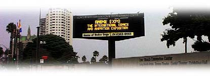 It's not very often that I can just sit back and watch. As I sit here, hundreds of people go rushing by from all directions. At any given moment, I can look down from my current vantage point (the top picture there to the left) and see a wide variety of people and characters. I look down now and see Nadia and Hotohori taking pictures of some Sorcerer Stabber Orphen characters. Over on a lobby couch, a member of Team Rocket is sitting next to Sailor Mars. Inu-Yasha walks past Super Saiyan Gokuu. And I don't think I can even count the number of times I've seen different Sakuras, Tifas, Chichiris and various other popular characters... Yes, that's right. It can only be an anime con, coming to you live (at least as I type this that is) from the 10th annual Anime Expo.