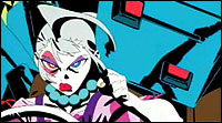 Though the movie starts out in a random conglomerate of insane scenes of city violence following the main characters, Retro and Pandy, waking up with what appears to be amnesia, any hope of understanding the plot is dashed until the very end. They find themselves arrested after a huge battle with police and other law enforcement and are sentenced to Dead Leaves, a penal colony on the moon that harvests their excrement each day. All the criminals are bound in full-body straightjackets and have pretty well adapted to their routine in the prison; the routine of waking up, being moved to massive feeding and harvesting rooms, and being returned to their cells to await the next harvest cycle.