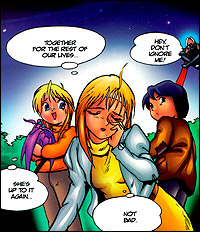 The artwork in the series is very enchanting. The use of “normal” character designs and super deformed art lends itself well to the comedic nature of the story. Another great positive point is the use of color in the series. Going contrary to the typical black and white art formula in a manga series creates a rich visual presentation that helps keep your attention moving forward with the story. The vibrant colors help combat the one nitpick I’ve found with the series. There are times when the dialog can happen so fast that it’s a bit difficult to keep track of some of the conversations, but the visuals keep things going even in the times of confusion. The story for Angel’s Wing is very simple, but engaging enough to be something that a wide variety of fans will enjoy.